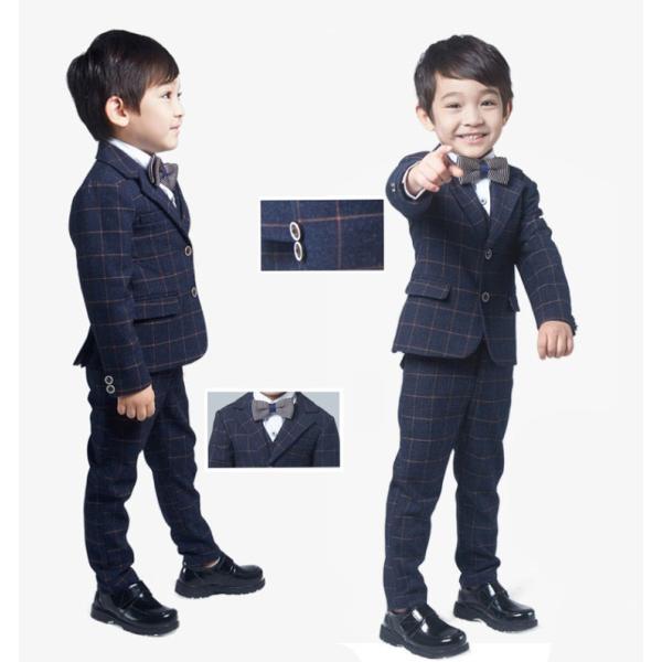 jpバレンタインデー 子供服 男の子 フォーマルスーツ セットアップ ジャケット・ベスト・パンツ・ネクタイ・シ 英国風チェック柄タキシード 子供スーツ 男の子スーツ クリスマスプレゼント 3点セット フォーマル 子供発表会入学式 スーツ キッズ 紳士服 七五三 どもス.